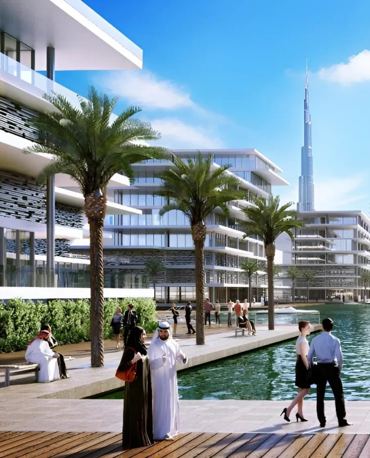 • Retail Boulevard and Cultural Hub: A 700-meter-long, climate-controlled boulevard is bustling with shops, cafes, and restaurants. At the southern tip of the boulevard is the Azizi Opera House, proposed as Dubai’s second opera venue.